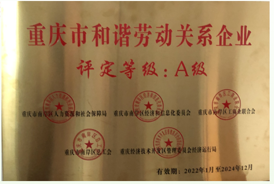 近日,重慶創(chuàng)迪科技榮獲由重慶市人力資源和社會保障局、重慶市南岸區(qū)經(jīng)濟和信息化委員會、重慶市南岸區(qū)工商業(yè)聯(lián)合會、重慶市南岸區(qū)總工會、重慶經(jīng)濟技術(shù)開發(fā)區(qū)管理委員會經(jīng)濟運行局共同頒發(fā)的2022年度“重慶市和諧勞動關(guān)系企業(yè)A級”稱號。